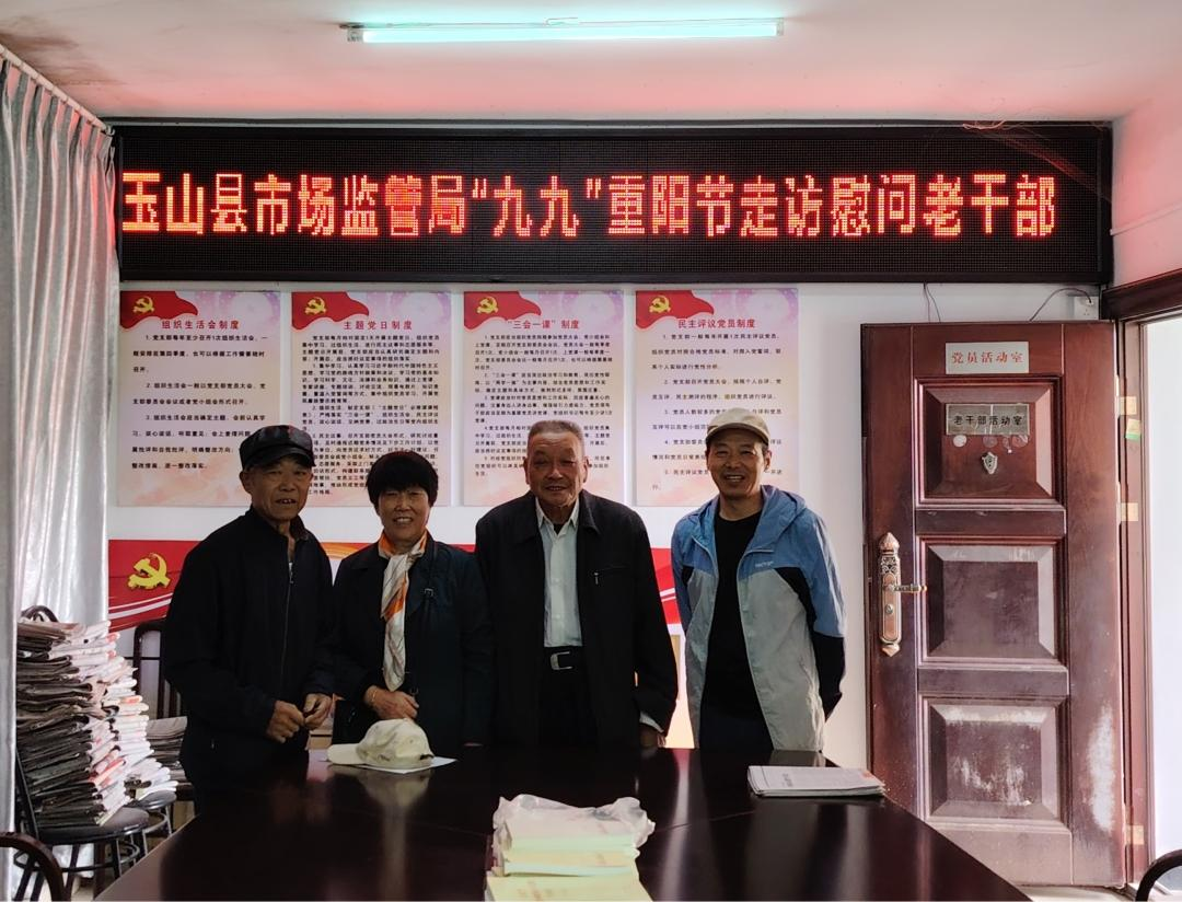 金秋送爽,岁岁重阳。在“九九重阳节”来临之际,为弘扬尊老敬老爱老传统美德、传递党组织关怀,10月25日,江西省上饶市玉山县市场监管局组织开展重阳节走访慰问活动,向退休老干部致以节日问候与美好祝福。