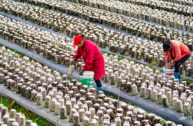 1月19日,唐山市丰润区任各庄镇的农民在大棚内采收芹菜。 春节前夕,河北省唐山市丰润区的果蔬大棚内一派繁忙景象,农民加紧对蔬菜、瓜果进行管护、采收,以供应节日市场。 近年来,唐山丰润区引导农民采取公司+合作社+农户的模式,因地制宜发展蔬菜、瓜果等特色果蔬种植,有效带动了农民增收。